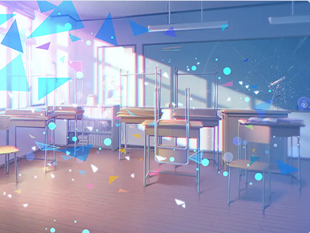 由四個人真正的心願所形成的晚霞映照下的學校「世界」。