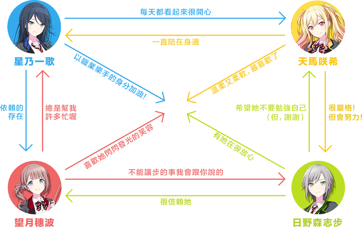 在「世界」的教室等待著四人。 以音樂前輩的身分聽取煩惱, 並推動她們前進。